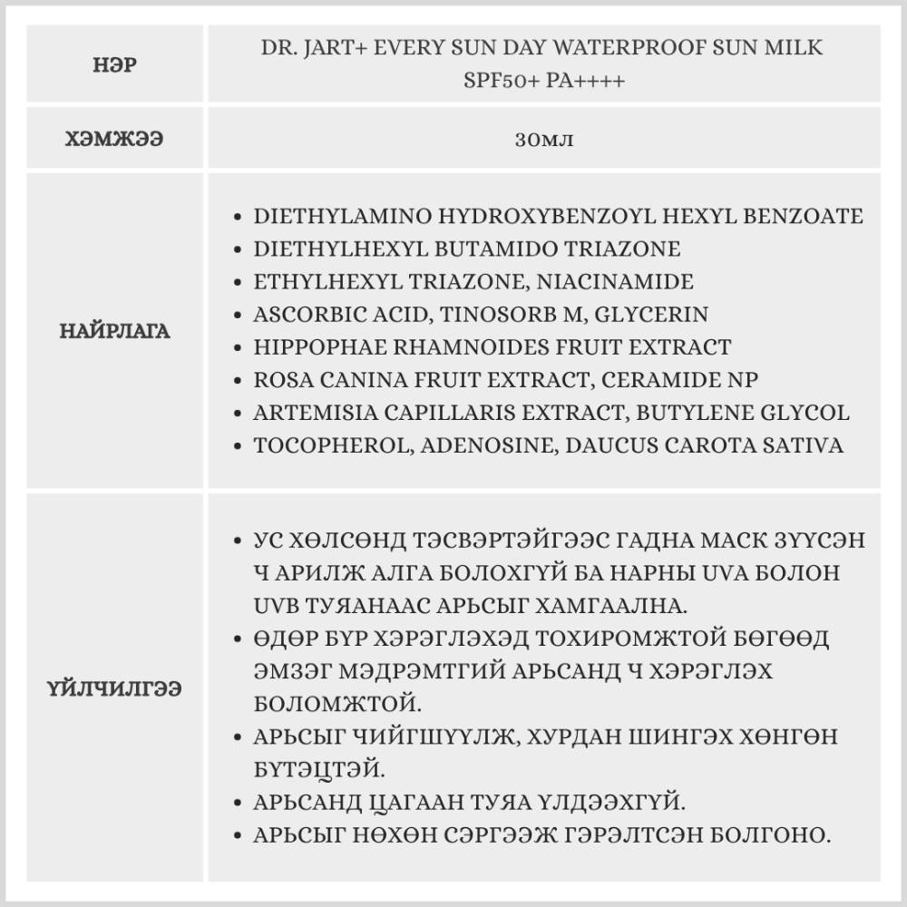 Dr. Jart+ Every Sun Day Waterproof Sun Milk, 30ml /Нарны тос/