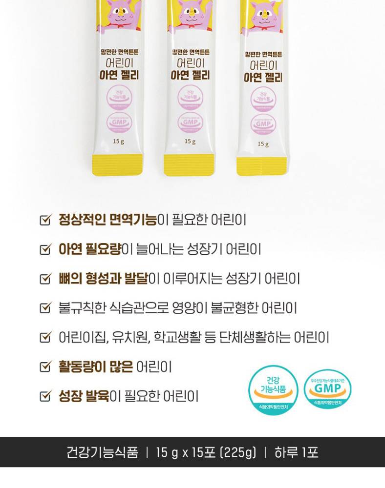 Хүүхдийн дархлааны хэвийн үйл ажиллагааг хангахад чухал үүрэгтэй цайрыг агуулсан, амттай желли хэлбэрийн нэмэлт тэжээл юм. Цайр нь эсийн хуваагдал, өсөлт хөгжилтөнд чухал бөгөөд ялангуяа өвчлөмтгий хүүхдүүдийн дархлааг бэхжүүлэхэд тустай.