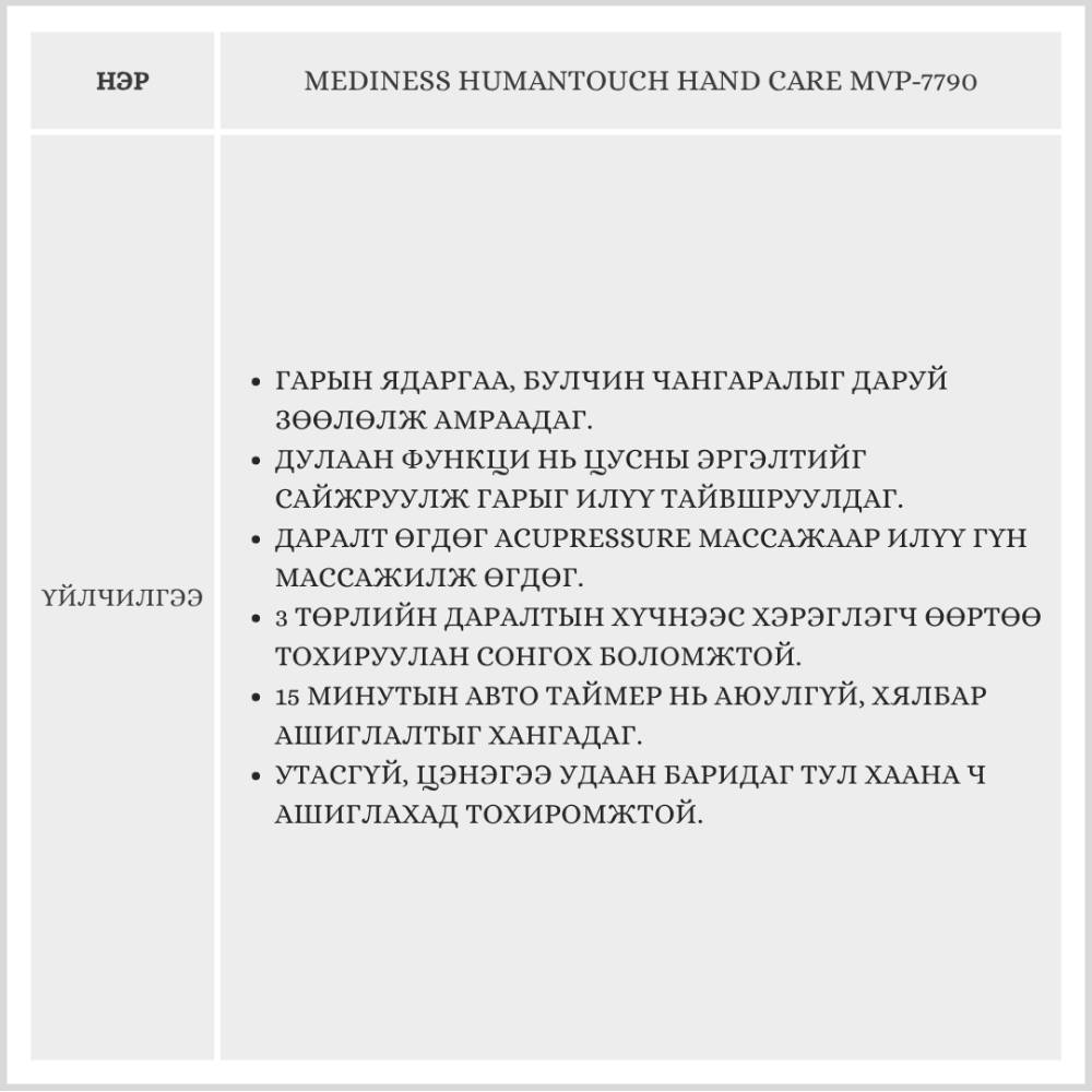 MEDINESS HUMANTOUCH HAND CARE MVP-7790 /МАСАЖНЫ ТӨХӨӨРӨМЖ/