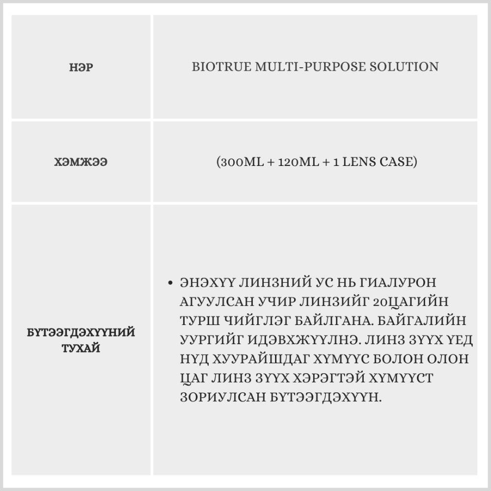 Уг бүтээгдэхүүн нь линз олон цаг зүүдэг болон нүдний хуурайшилттай хүмүүст зориулсан линзний ус.
