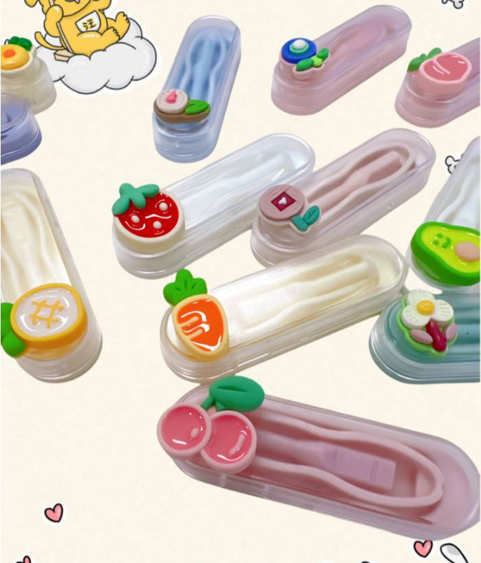 Уг бүтээгдэхүүн нь 6төрлийн жимсний загвартай өөр өөр өнгөтэй линзний чимхүүр болон линз тогтоогч багтсан. Авч явахад өхөөрдөм загвартай ба жижигхэн учир хаана ч багтана.