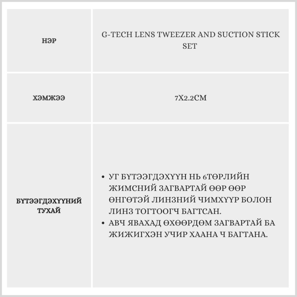 G-Tech Lens Tweezer and Suction Stick Set /Линзний дагалдах хэрэгсэл/