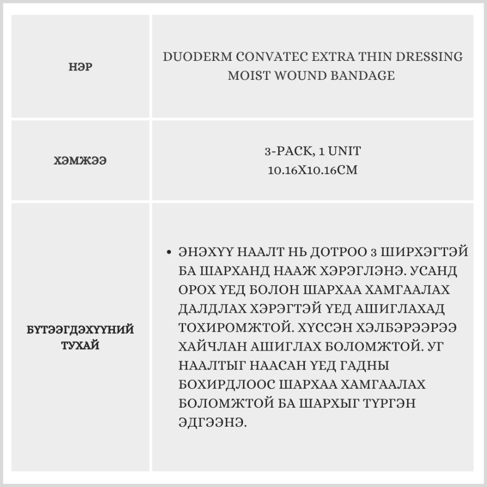 DuoDERM ConvaTec Extra Thin Dressing Moist Wound Bandage 3-pack, 1 unit /Шархны наалт/
