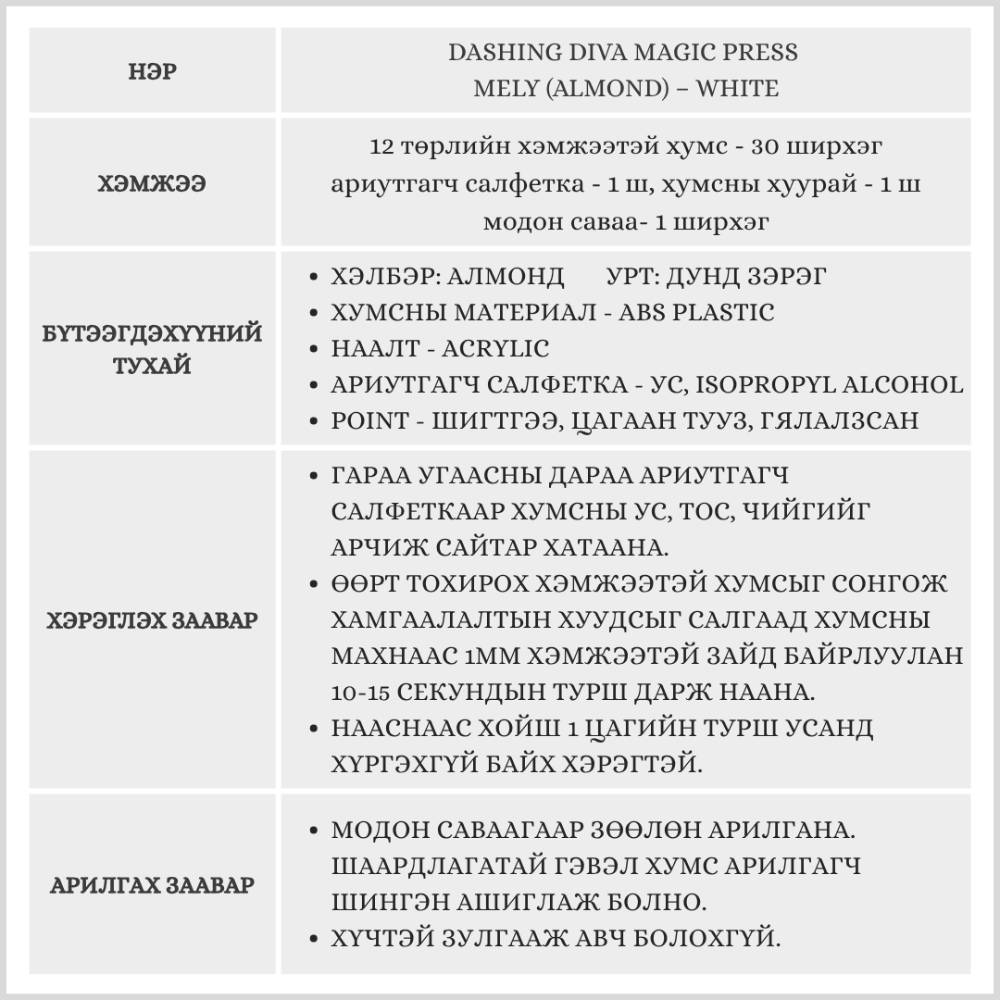 Dashing Diva Magic Press Mely (Almond) – White, (1сет) /Наадаг хумс/