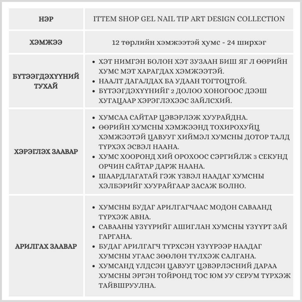 Ittem Shop Gel Nail Tip Art Design Collection, (1 сет) /Наадаг хумс/