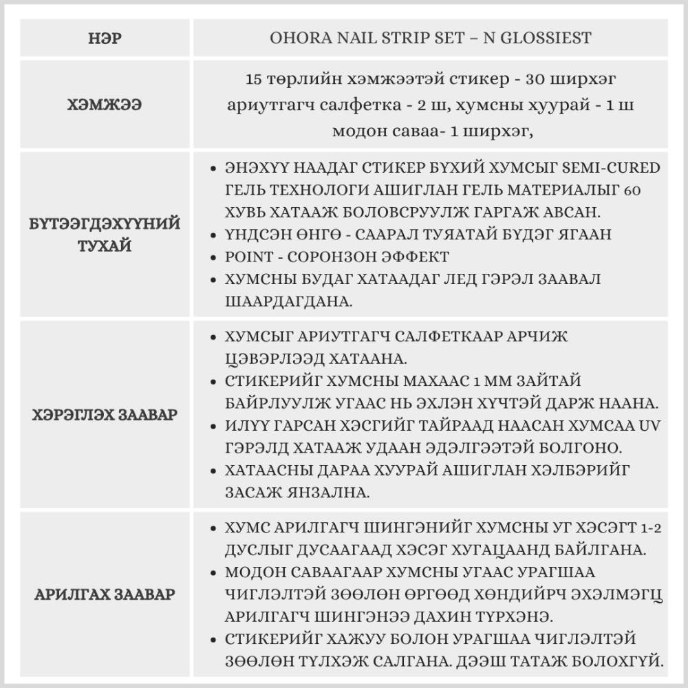 Ohora Nail Strip Set – N Glossiest, (1сет) /Наадаг хумс/
