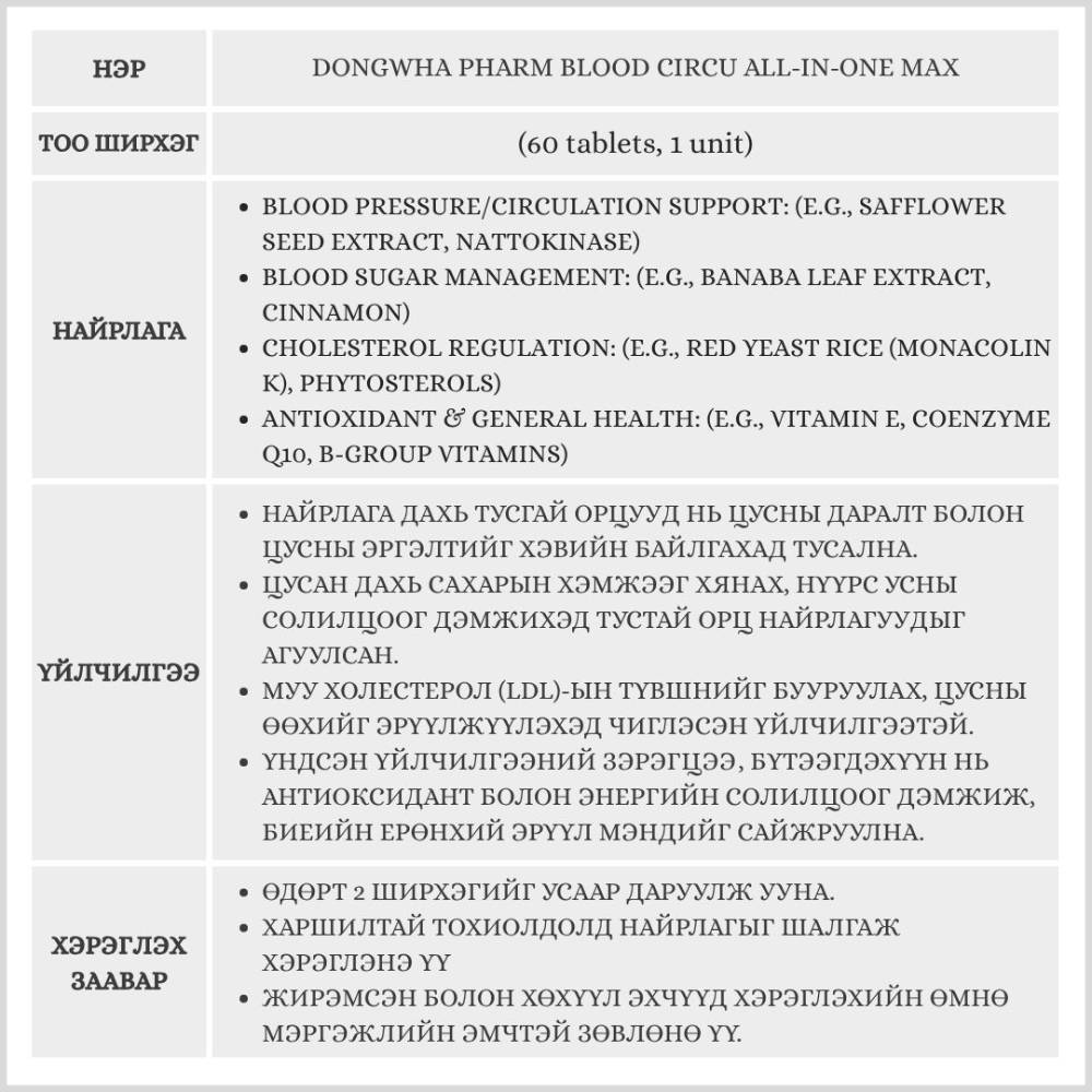 Dongwha Pharm Blood Circu All-in-One Max 60 tablets, 1 unit(нэмэлт тэжээл)