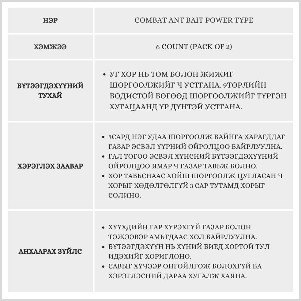 Combat Ant Bait Power Type, 6 Count (Pack of 2) /Шоргоолжны хор/