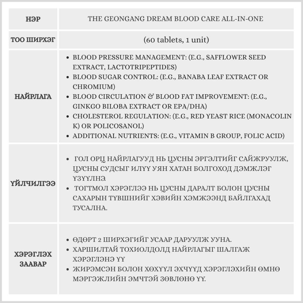 The GeonGang Dream Blood Care All-in-One 60 tablets, 1 unit(нэмэлт тэжээл)
