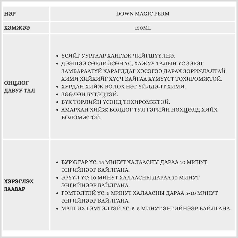 DOWN MAGIC PERM/ҮСНИЙ ХИМИ/
