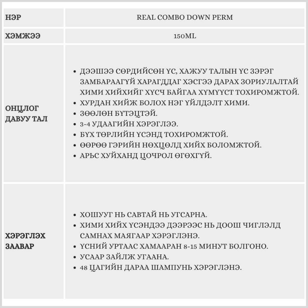REAL COMBO DOWN PERM/ҮСНИЙ ХИМИ/