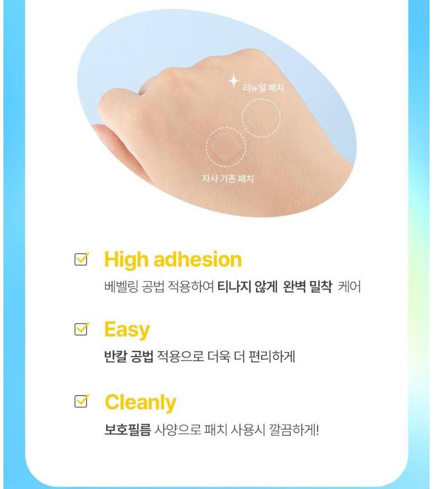 Тайвшруулах болон эдгээх хоёр төрлийн үйлчилгээ бүхий наалтыг агуулсан батганы наалтын сет бүтээгдэхүүн. Ус хөлсөнд тэсвэртэй тул амархан салж унахгүй. Нимгэн бөгөөд наалдац сайтай.