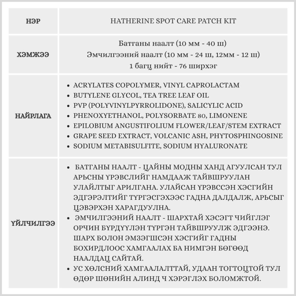 Hatherine Spot Care Patch Kit, 76ш (2 багц) /Батга болон шархны наалт/