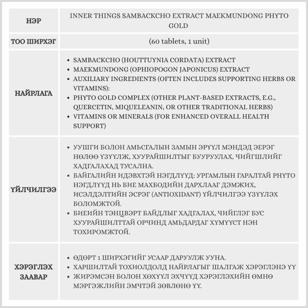 Inner Things Sambackcho Extract Maekmundong Phyto Gold 60 tablets, 1 unit (нэмэлт тэжээл)
