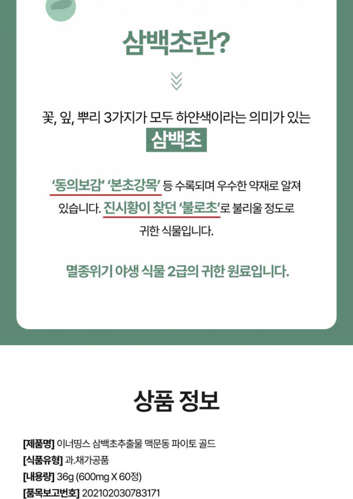 Уламжлалт анагаах ухаанд өргөн хэрэглэгддэг Самбагчо (삼백초) ба Майкмүньдунь (맥문동) зэрэг ургамлын хандыг агуулсан, амьсгалын замын эрхтэн тогтолцоог болон биеийн ерөнхий эрүүл мэндийг дэмжих зорилготой тэжээлийн нэмэлт бүтээгдэхүүн юм.
