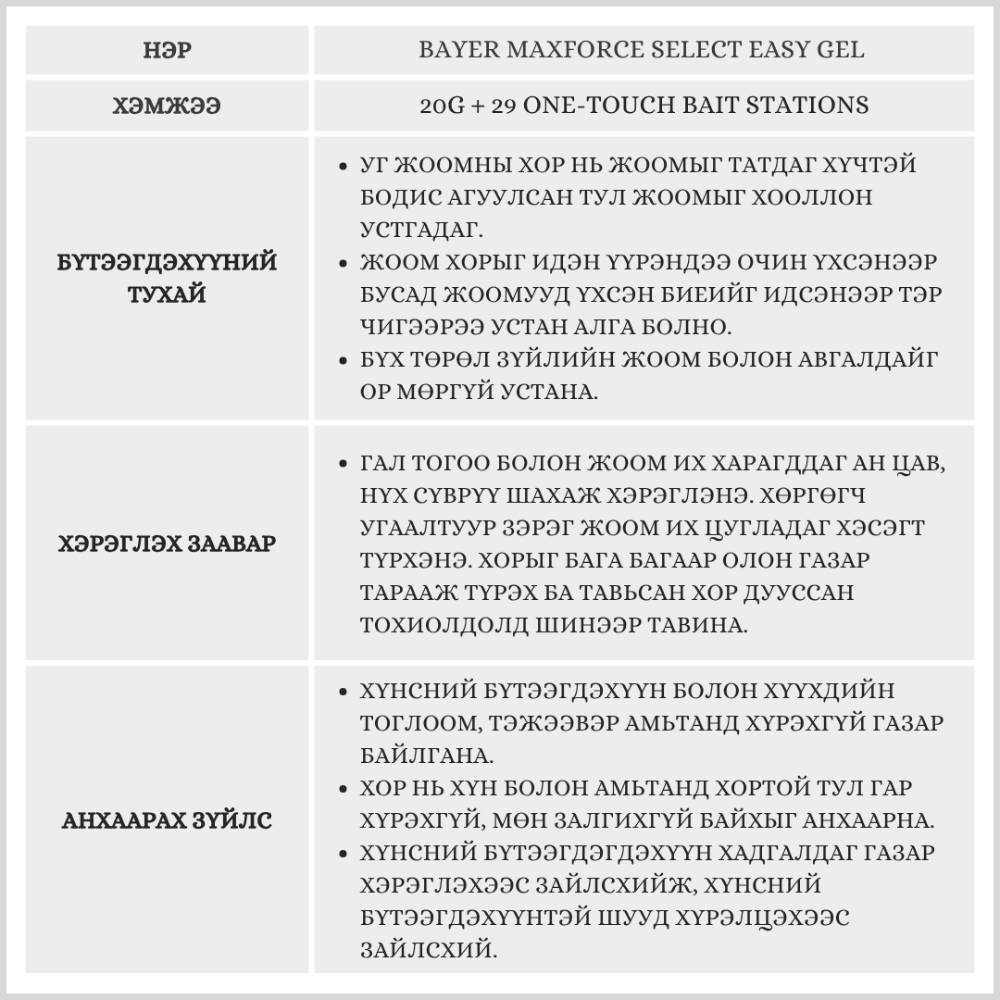 Bayer Maxforce Select Easy Gel 20g + 29 One-Touch Bait Stations /Жоомны хор/