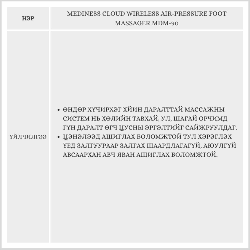 MEDINESS CLOUD WIRELESS AIR-PRESSURE FOOT MASSAGER MDM-90 / ХӨЛИЙН МАССАЖНЫ ТӨХӨӨРӨМЖ /