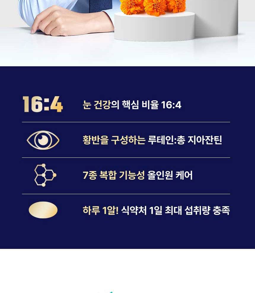 Lutein 16мг болон Zeaxanthin 4мг-ийг хамгийн тохиромжтой 16:4 харьцаатайгаар агуулсан нүдний нэмэлт тэжээл юм. Энэхүү хоёр нэгдэл нь нүдний шар толбо (Macula)-ны үндсэн пигментүүд бөгөөд насжилт, дижитал хэрэглээ зэргээс шалтгаалан буурсан пигментийн хадгалахад туслах гол үүрэгтэй.