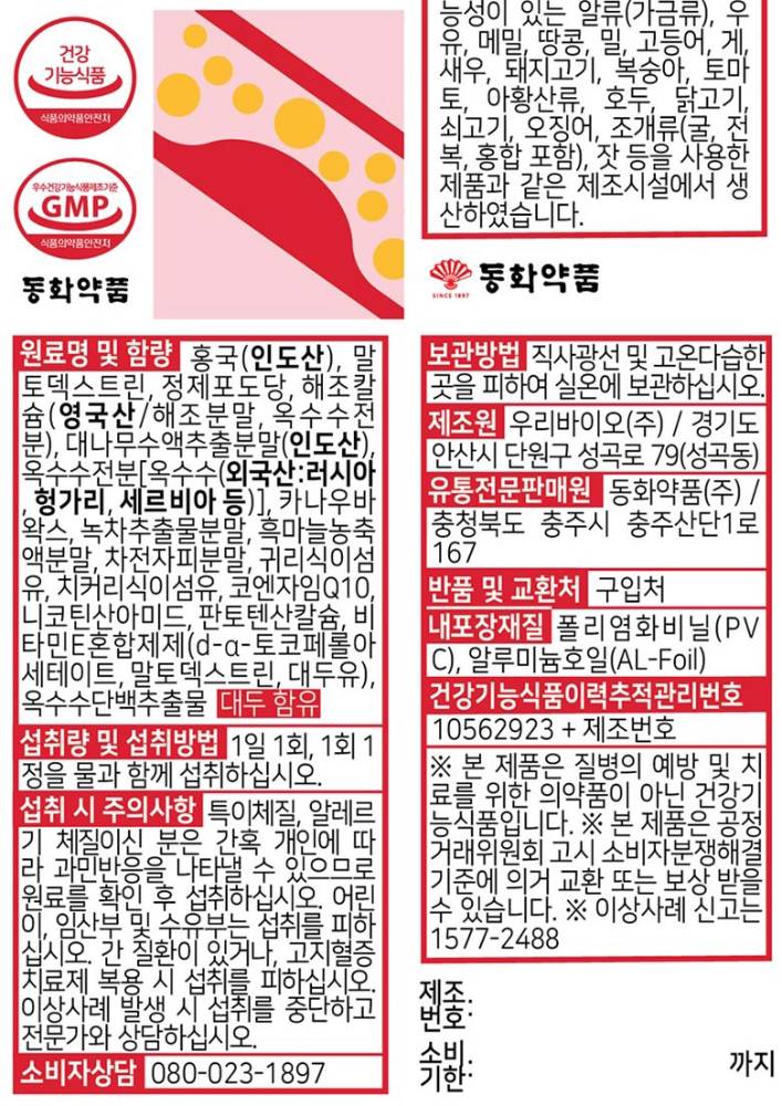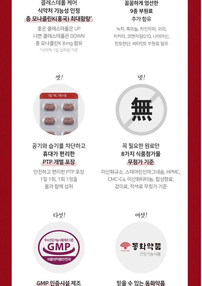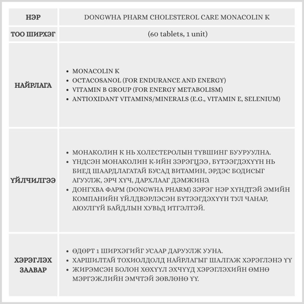 Dongwha Pharm Cholesterol Care Monacolin K 60 tablets, 1 unit (нэмэлт тэжээл)