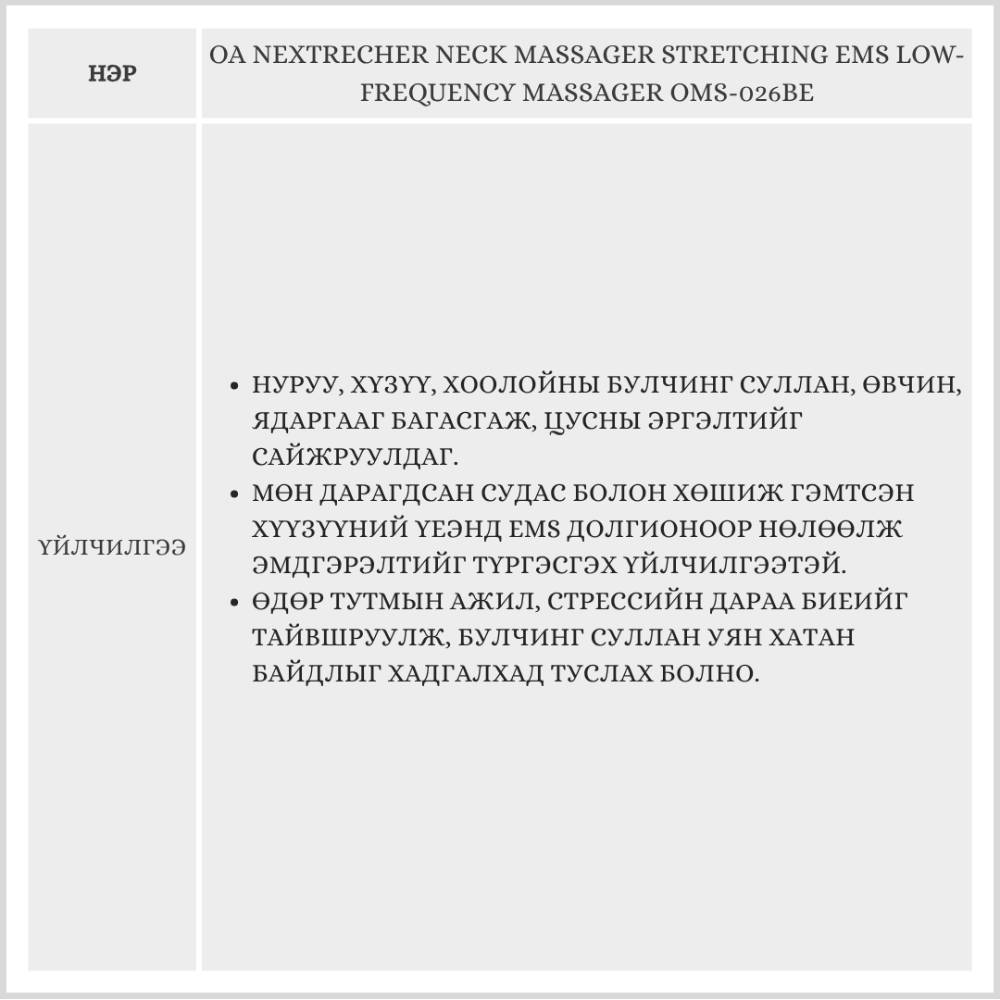 OA NEXTRECHER NECK MASSAGER STRETCHING EMS LOW-FREQUENCY MASSAGER OMS-026BE / МАССАЖНЫ ТӨХӨӨРӨМЖ /