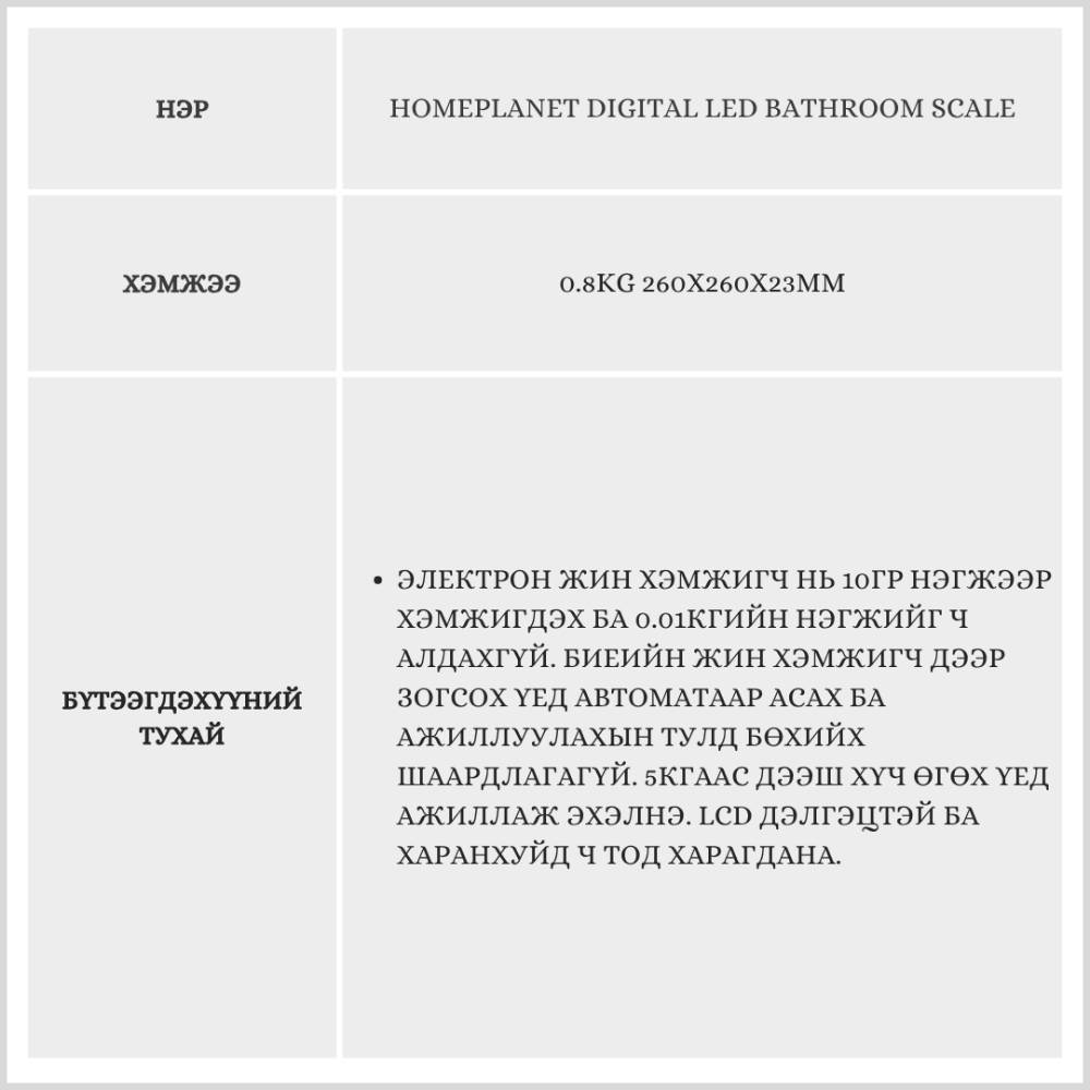 HomePlanet Digital LED Bathroom Scale /Электрон жин хэмжигч/