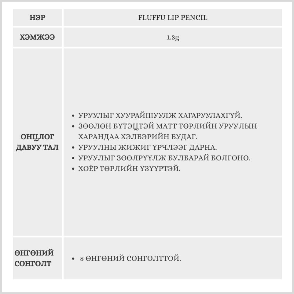 FLUFFU LIP PENCIL/ УРУУЛЫН ХАРАНДАА/