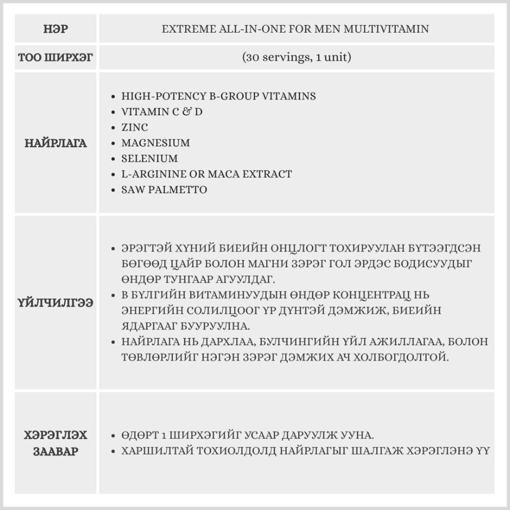 Extreme All-in-One for Men Multivitamin 30 servings, 1 unit (эрэгтэйчүүдийн витамин)