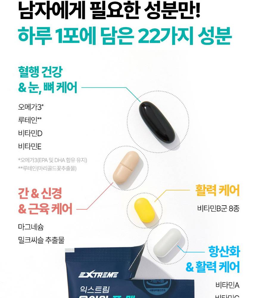 Идэвхтэй амьдралын хэв маягтай болон биеийн хүчний өндөр ачаалалтай ажилддаг эрэгтэйчүүдийн хоол тэжээлийн хэрэгцээг нөхөх зорилготой, витамин, эрдэс бодис, ургамлын хандны өндөр концентрацтай мульти витамин юм.