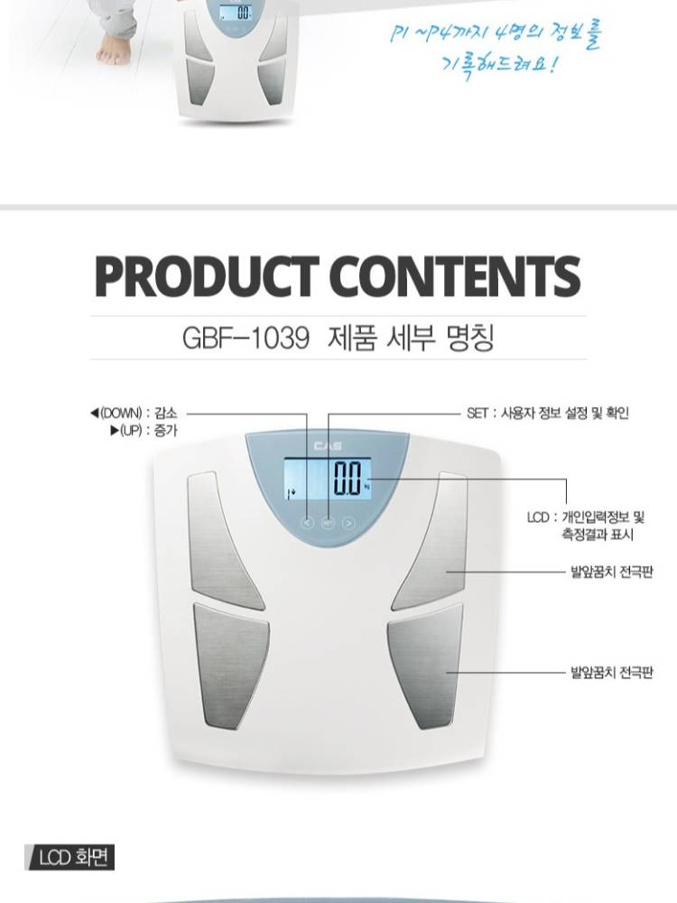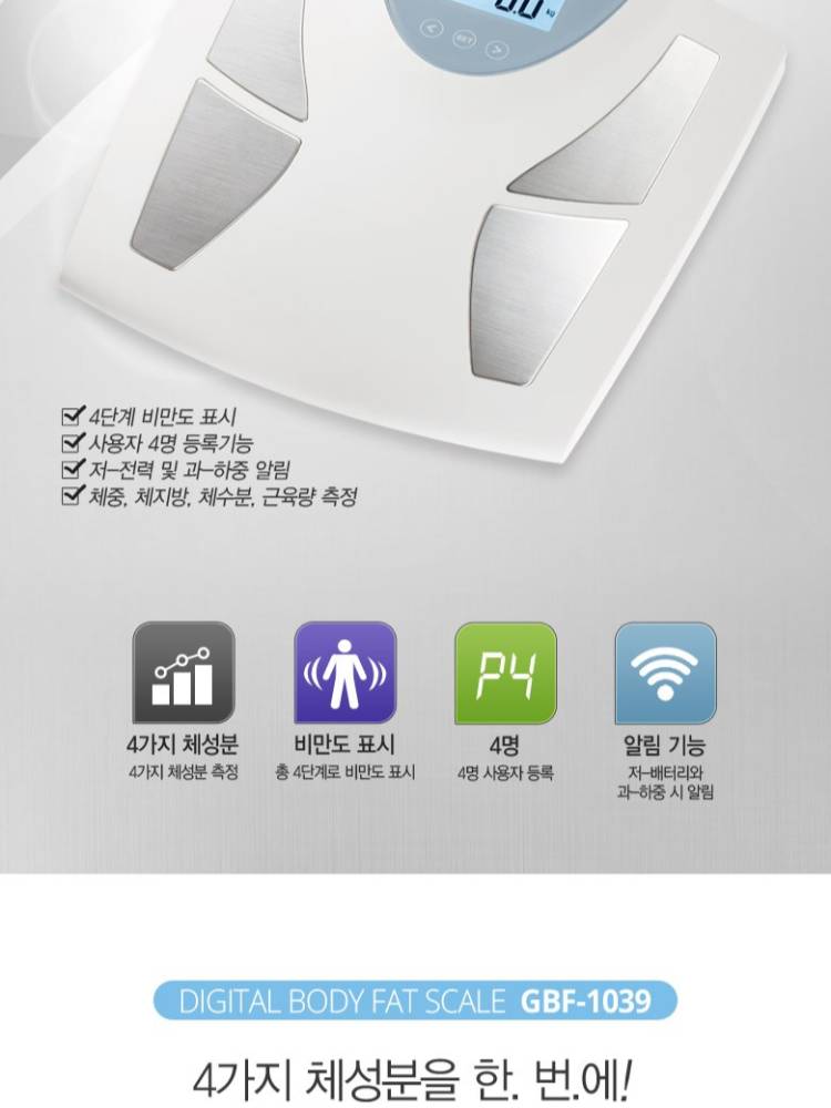 Уг жин хэмжигч нь биеийн чухал 4 үзүүлэлтийг харуулах ба 180кг хүртэл жинг үзнэ.