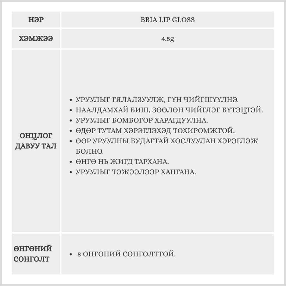 BBIA LIP GLOSS /УРУУЛ ӨНГӨЛӨГЧ/