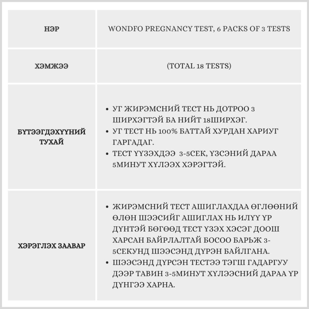 Энэхүү жирэмсний тест нь хурдан бөгөөд оновчтой хариуг гаргана. Дотроо олон ширхэгтэй ба хариуг шалгахад 5минут л хангалттай.