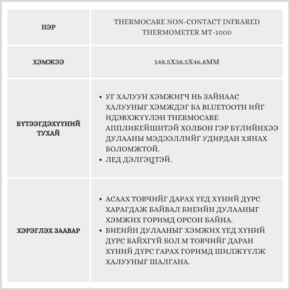Thermocare Non-Contact Infrared Thermometer MT-1000 /Халуун хэмжигч/