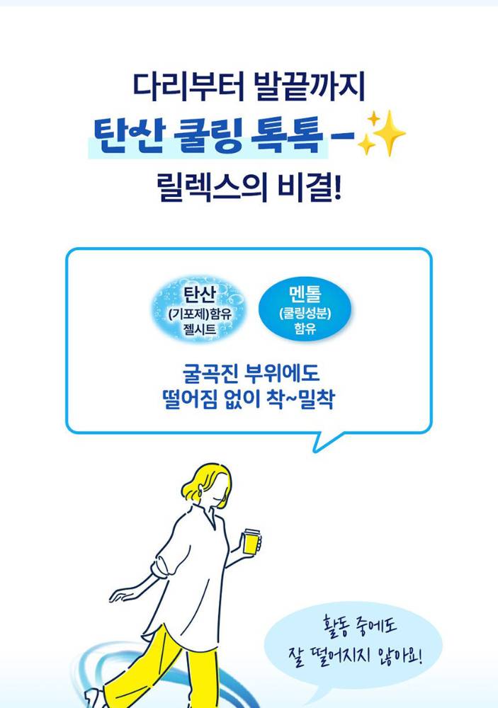 Ядарч хавдсан хөлийн булчинг тайвшруулж сэрүүцүүлэх үйлчилгээтэй карбонатаар баяжуулсан хөлийн наалт. 6 цагийн турш тасралтгүй үйлчлэх ба уян хатан бүтэцтэй ба наалдац сайтай тул амархан салж унахгүй хөдөлгөөнд тэсвэртэй.