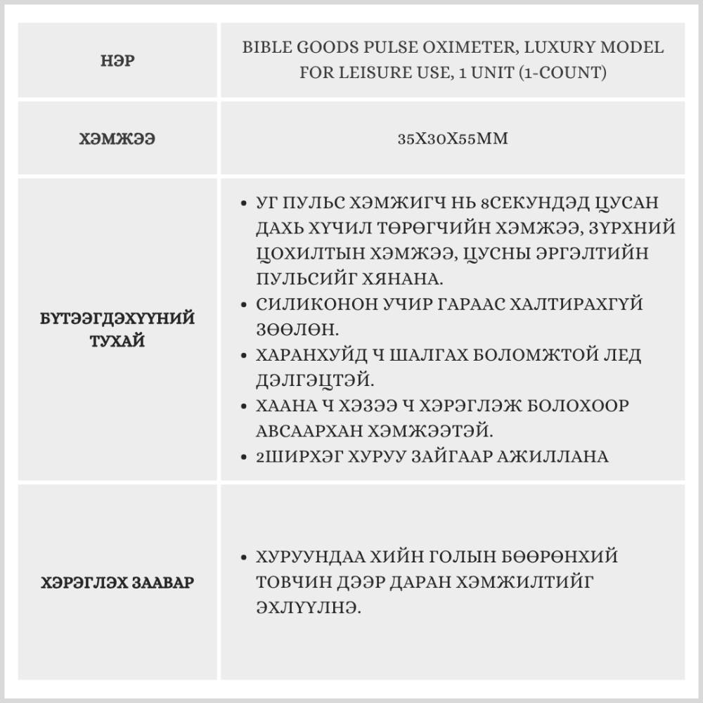 Bible Goods Pulse Oximeter, Luxury Model for Leisure Use, 1 Unit (1-Count) /ПУЛЬС ХЭМЖИГЧ/