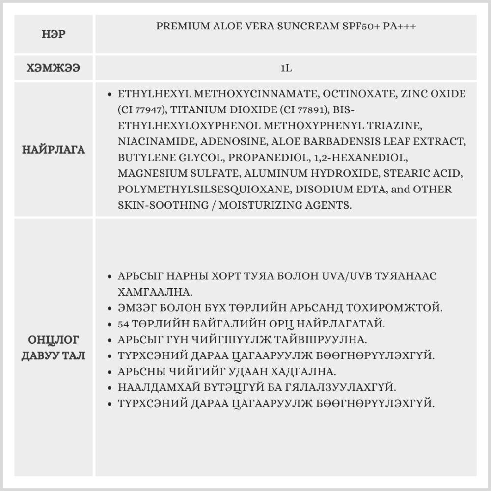 ALOE VERA БОЛОН 54 ТӨРЛИЙН БАЙГАЛИЙН ОРЦ НАЙРЛАГААР ХИЙСЭН ЧИЙГШҮҮЛЭХ ҮЙЛЧИЛГЭЭТЭЙ НАРНААС ХАМГААЛАХ ТОС.