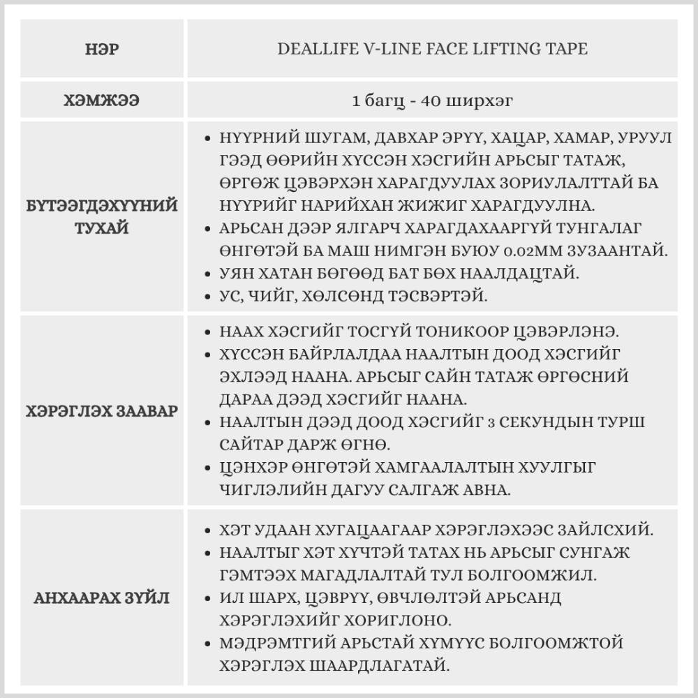 Deallife V‑Line Face Lifting Tape, 40ш (2 багц) /Нүүрний хэлбэр засах наалт/
