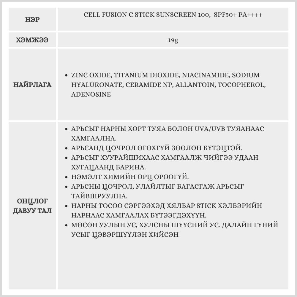 CELL FUSION C STICK SUNSCREEN 100, SPF50+ PA++++ /DERMA SUN STICK/
