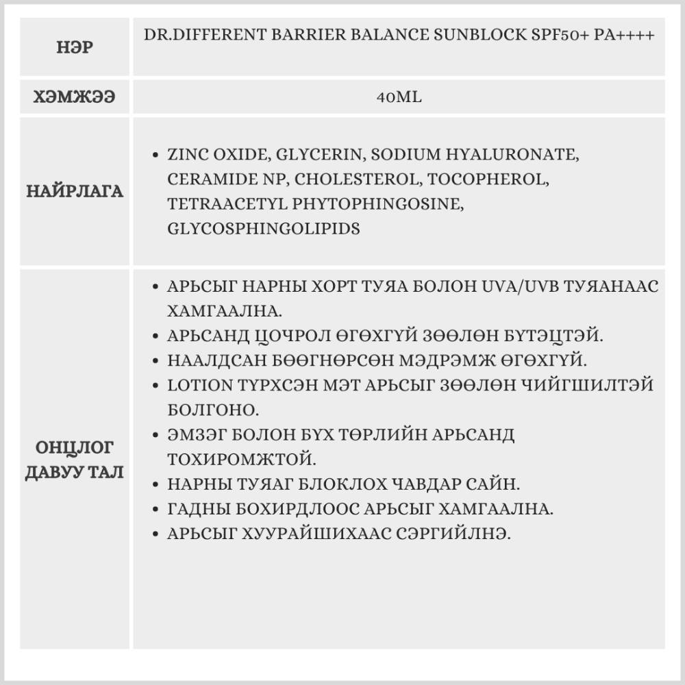 DR.DIFFERENT BARRIER BALANCE SUNBLOCK SPF50+ PA++++ / DERMA НАРНЫ ТОС/