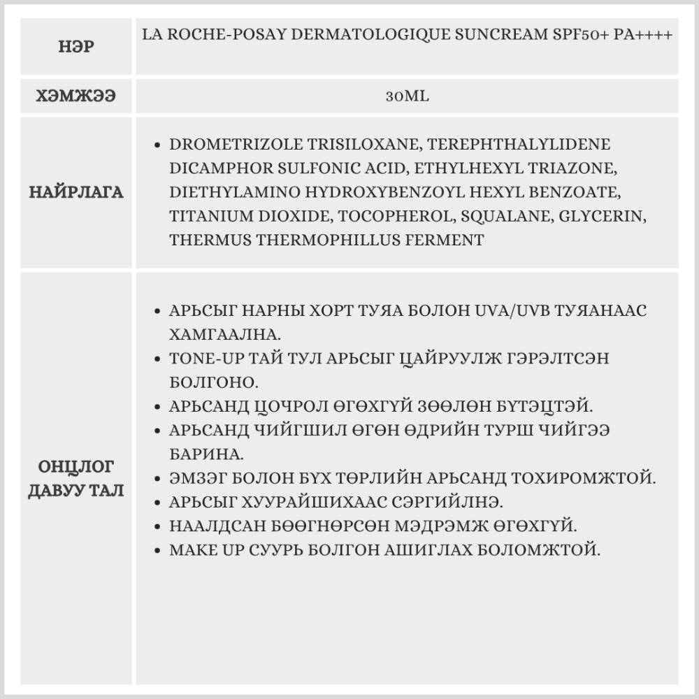 LA ROCHE-POSAY DERMATOLOGIQUE SUNCREAM SPF50+ PA++++ /DERMA НАРНЫ ТОС/