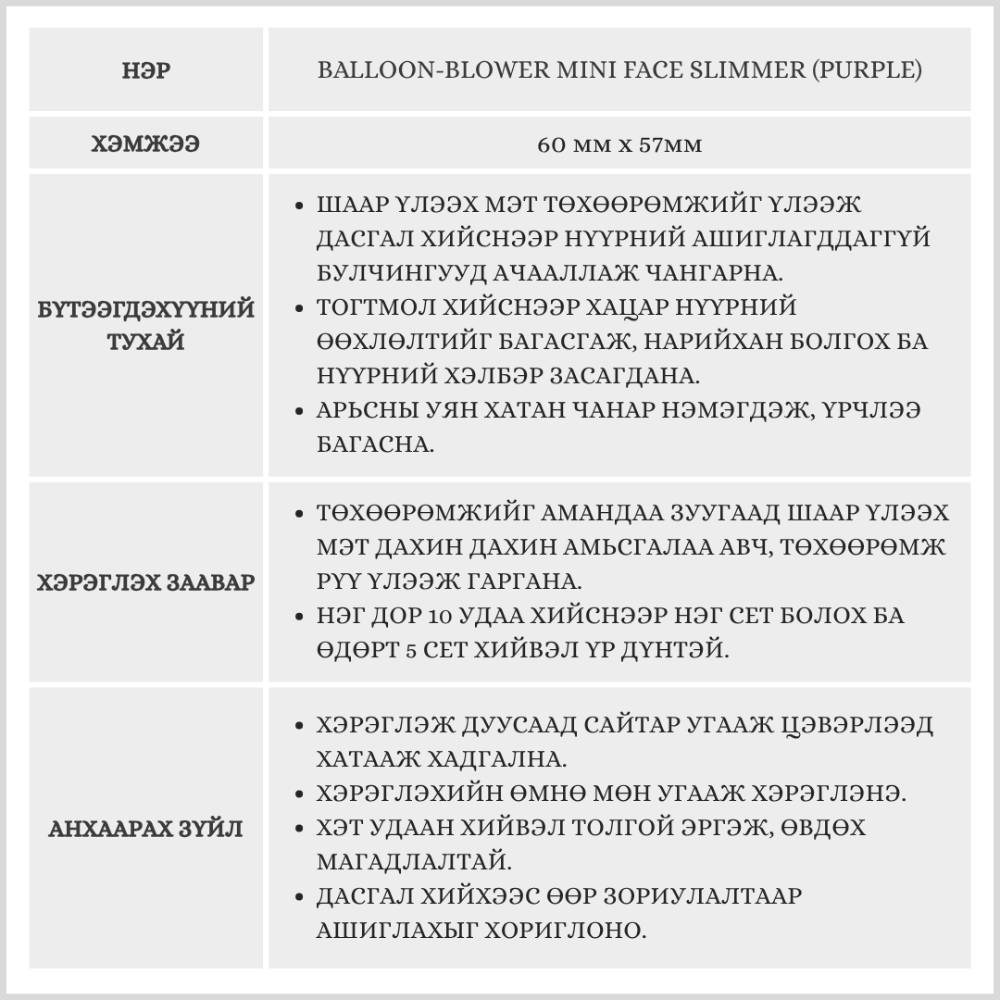 Balloon-Blower Mini Face Slimmer (Purple), 1ш /Нүүрээр тураах дасгалын хэрэгсэл/