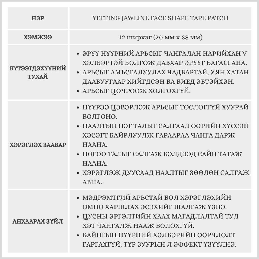 Yefting Jawline Face Shape Tape Patch, /Нүүрний хэлбэр засах наалт/