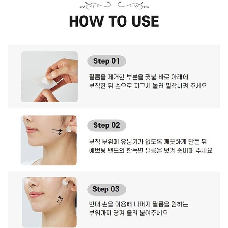 Нүүрийг хэсэг хугацаанд нарийн харагдуулах арьс татагч наалт. Унжсан болон үрчлээтэй арьсыг татаж нүүрний V хэлбэрийг тодотгох үйлчилгээтэй. Наалдац сайтай, удаан тогтоцтой.