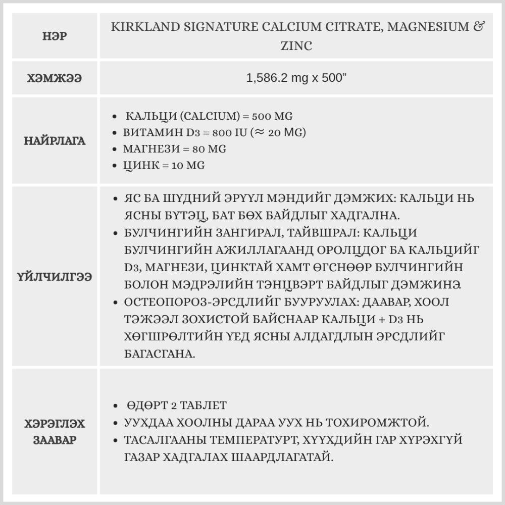 Кальци нь ясны бүтэц, бат бөх байдлыг хадгална. Кальци булчингийн ажиллагаанд оролцдог ба кальцийг D3, магнези, цинктай хамт өгснөөр булчингийн болон мэдрэлийн тэнцвэрт байдлыг дэмжинэ. Даавар, хоол тэжээл зохистой байснаар кальци + D3 нь хөгшрөлтийн үед ясны алдагдлын эрсдлийг багасгах үр нөлөөтэй