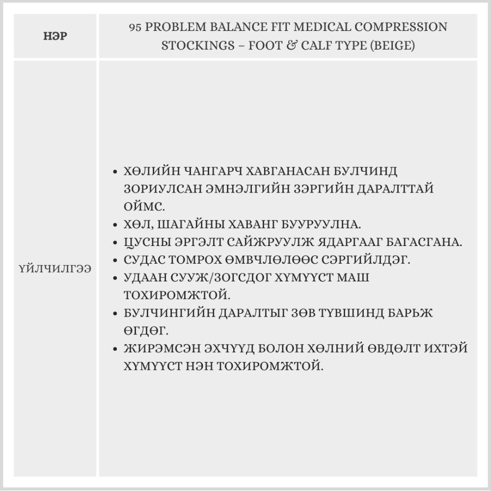 95 PROBLEM BALANCE FIT MEDICAL COMPRESSION STOCKINGS – FOOT & CALF TYPE (BEIGE) / Хавангийн оймс /