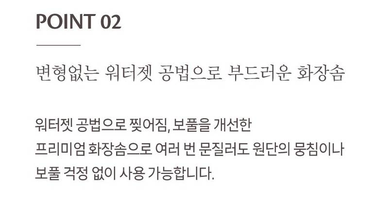 Зуун хувь хөвөн материалтай, өндөр даралтын шахалтийн аргаар хийсэн арьс арчилгааны хөвөн. Цавуу болон цайруулагч бодис агуулаагүй тул арьсыг цочроохгүй. Хэт мэдрэмтгий арьсанд ч хэрэглэх боломжтой.