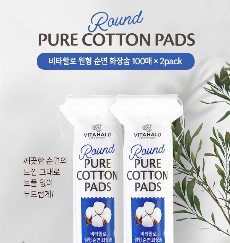 VITAHALO Non-Fluorescent Thick Round Pure Cotton Pads, 100ш (2 багц) /Нүүрний хөвөн/