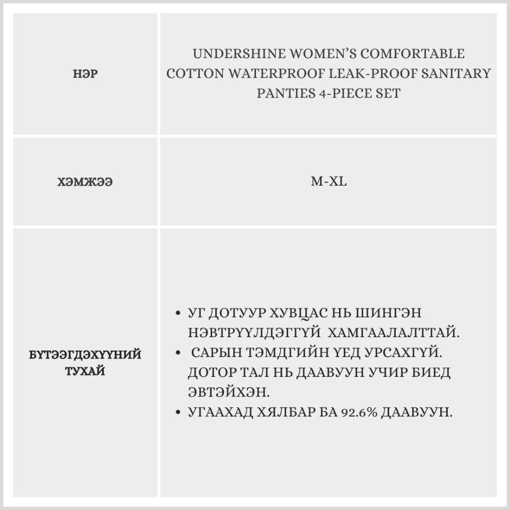 UnderShine Women’s Comfortable Cotton Waterproof Leak-Proof Sanitary Panties 4-Piece Set /Сарын тэмдгийн дотуур хувцас/