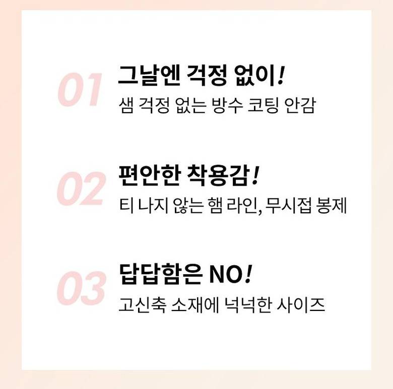 Уг өмсдөг дотуур хувцас нь 3ширхэг ба 3 өөр өнгөтэй. 3 давхарга шингэн нэвтрүүлэхгүй бүтэцтэй.