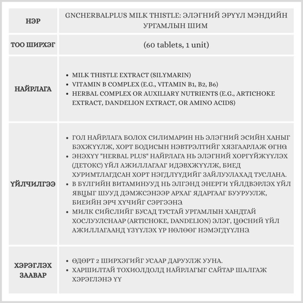 GNCHERBALPLUS Milk Thistle 60 tablets, 1 unit (элэгний нэмэлт тэжээл)