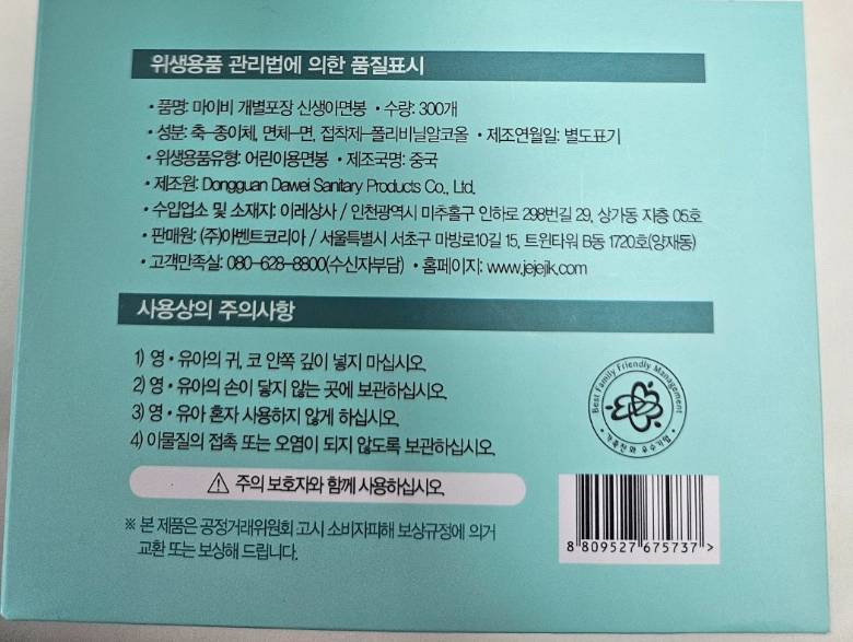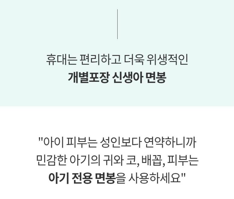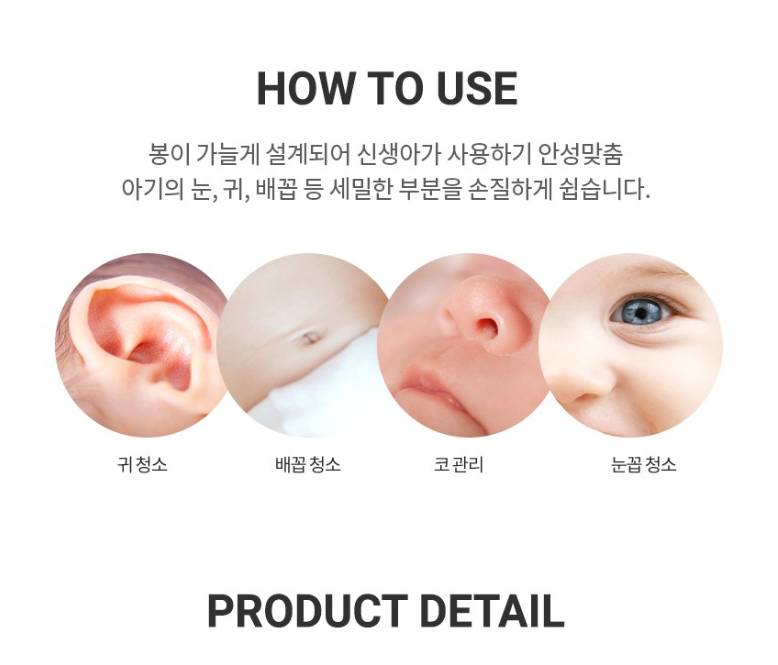 Шинэхэн нярай хүүхдэд зориулсан, ширхэг тус бүрээр тусгаарлагдсан савлагаатай чихний хөвөн. Эрүүл ахуйн өндөр шаардлагыг хангасан ба хоёр төрлийн хөвөн толгойтой тул нярай хүүхдийн чих, хамар, нүд, хүйг цэвэрлэхэд хялбар болгоно.